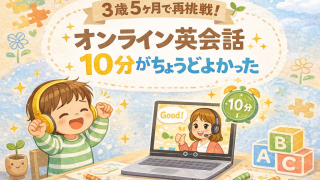 2歳10ヶ月でオンライン英会話をやめた我が家が、3歳5ヶ月で10分レッスンに再挑戦。焦らなくていい理由と、子どもの成長に合った続け方を実体験からまとめました。