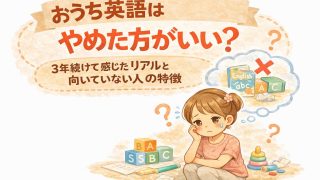 おうち英語はやめた方がいい?0歳から3年続けた体験をもとに、向いていない人の特徴やデメリットを解説。無理なく続けるコツや判断ポイントも紹介します。
