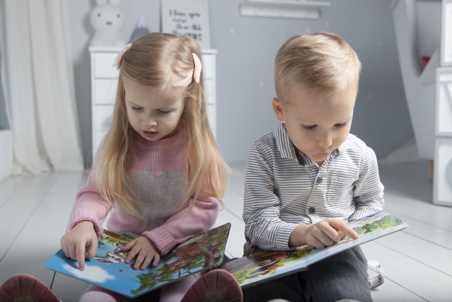 大人が本を読んでいる姿を見ると、子どもはまねしたくなるもの。